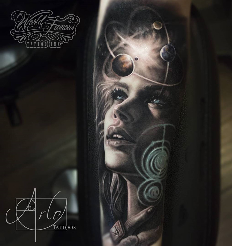 Watercolor solar system forearm tattoo.. 16.03.2016 · pretty woman's portrait with and atomic solar system. If you need some inspiration and you are into astronomy tattoo ideas, you will find a lot of solar system tattoo options down below!